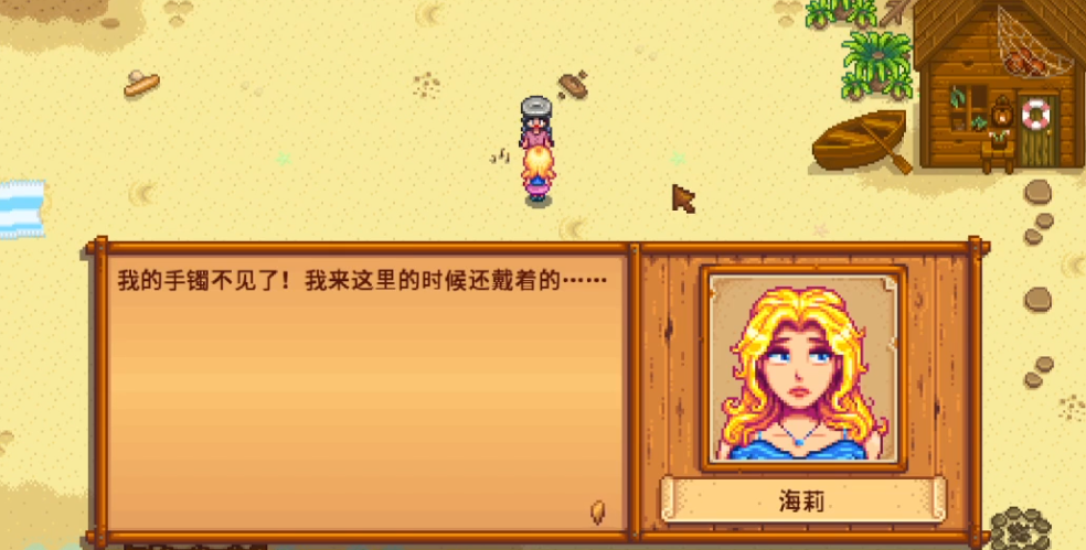 触发海莉手镯剧情需要先和她培养好感度到6颗心,春夏秋三季上午10点到下午4点之间去海滩找她。这时候她会提到丢失了祖母的手镯,选择太遗憾了……能加50好感度,选其他选项会扣30好感度。手镯位置在艾利欧特小屋右侧的灌木丛后面,靠近海边的地方有个圆形物品,右键拾取就能拿到。记得要在触发剧情期间去找,过了时间就没办法增加好感度了。找到后回去交给海莉,她会很开心地拥抱你,这段6心事件就完成了。