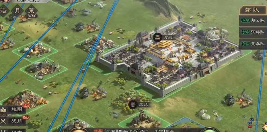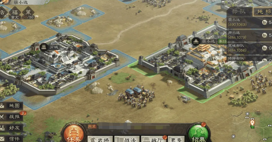 分城迁城是一项重要的战略操作,能够帮助玩家调整布局、优化资源获取或应对战场变化。分城迁城需要满足特定条件,包括占领11块相邻的无建筑土地、中心地块为6级及以上、名声值达到5000点、部队处于待命状态、无建筑升级中、未被俘虏以及支付500金铢。迁城操作与主城共享72小时冷却时间,因此需要合理安排迁城顺序以避免等待。