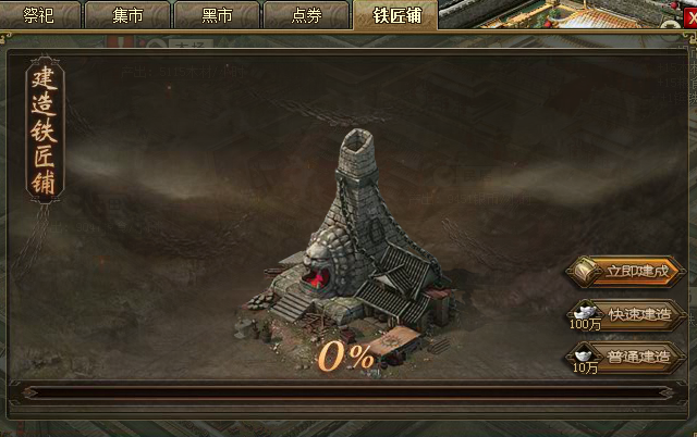 铁匠铺是提升军团战力的核心建筑,主要负责生产镔铁以强化装备和兵器。升级铁匠铺需要合理规划资源、解锁高级功能并优化生产效率。铁匠铺的初始建造需玩家达到101级并完成主线任务,通过点券购买图纸。一级铁匠铺可溶解玄铁石产出镔铁,后续等级依次解锁溶解宝物、紫装、玄铁原石和银币的功能。