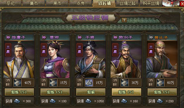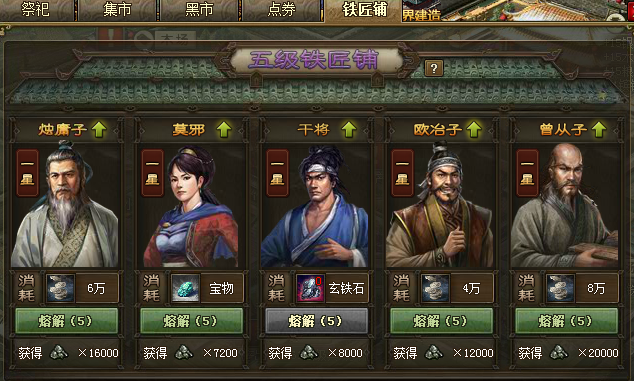 升级优先级建议从一级和四级铁匠铺开始,因其材料来源稳定(玄铁石和玄铁原石可通过世界事件或铁矿占领获取),而二级和三级铁匠铺因依赖功勋宝箱或商店紫装,材料获取较不稳定。首次升级需500金币,将铁匠头像变为红色,每次溶解额外获得2400镔铁;第二次升级需1500金币,头像变为紫色,额外获得3600镔铁。