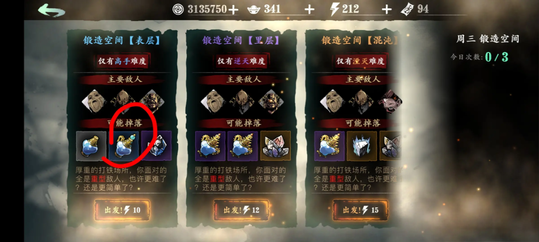 主线任务会少量奖励浓缩溶剂,但稳定性较差。修罗塔30层以上有概率掉落黑魔伤图纸,可间接获取溶剂类资源。周六周日副本轮换期间,建议集中刷取昼夜空间或罪业空间,溶剂掉率与体力消耗性价比最高。需注意不同难度关卡掉落物不同,普通难度可能无法获得溶剂。