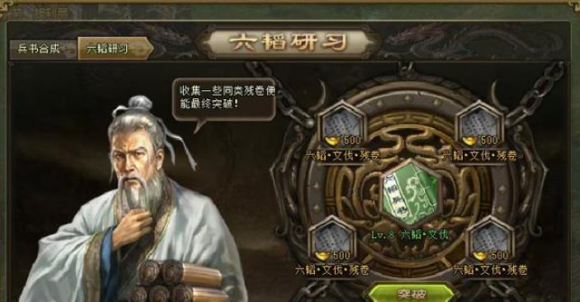 六韬兵书的升级依赖材料积累,包括低级兵书、六韬残卷等。一本九级兵书需消耗八级兵书、五级兵书、四级兵书及五本同类型六韬残卷,成本较高。普通玩家可通过日常活动、兵书封地逐步收集材料,建议优先将单本六韬升满进度而非盲目突破,以性价比最大化属性提升。若拥有五本同类型残卷,可考虑合成五本八级满属性兵书,而非强行突破为九级。