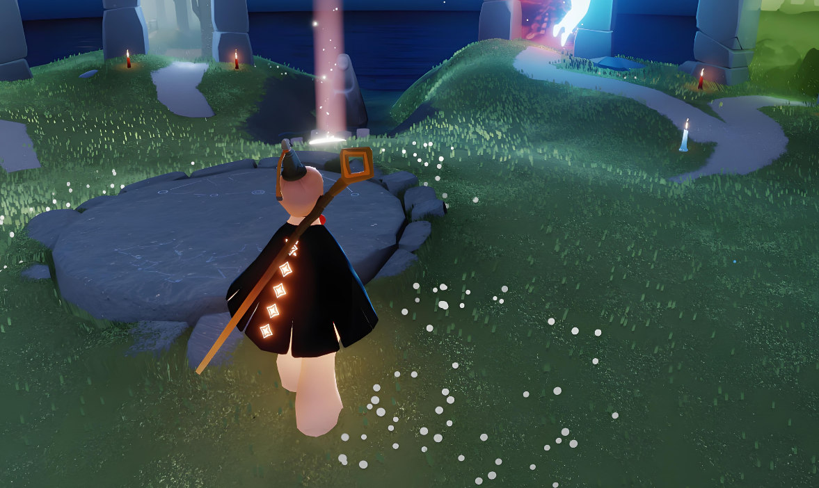在光遇里获得那根能放烟花的棍子(也叫烟花杖),咱们得先找到墓土地图中的敬礼先祖。这个先祖藏得有点深,需要进入墓土四龙图右侧的洞口,找到沉船图后飞到船背面才能触发。解锁先祖后记得送回神庙,再回到遇境的星盘把先祖所有节点点亮,最后用20颗爱心就能兑换烟花杖啦!解锁节点前还得准备3根暴风蜡烛,所以提前攒好资源很重要哦。