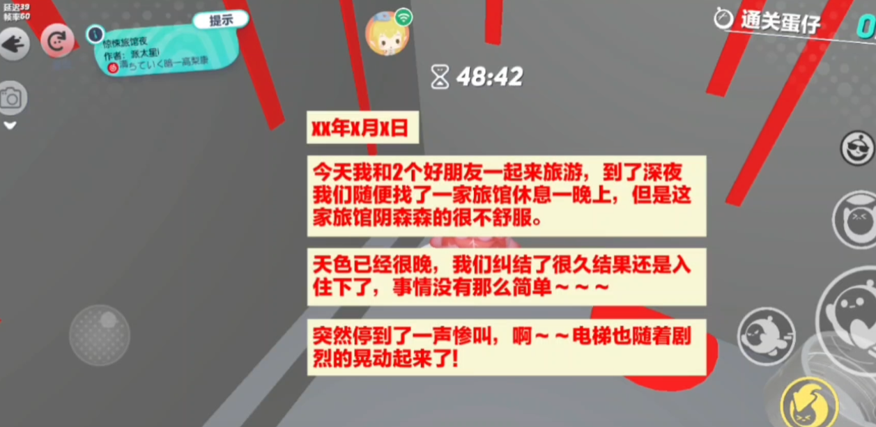 蛋仔派对惊悚旅馆是一款以恐怖解谜为主题的玩家自制地图,需要玩家在充满诡异氛围的旅馆环境中寻找线索并逃脱。该地图结合了环境探索、机关解谜和追逐战等元素,对玩家的观察力、反应速度和逻辑思维能力都有一定要求。进入地图后,玩家会发现自己置身于一个多层结构的旅馆中,每层都有独特的机关设计和谜题设置,需要通过互动寻找钥匙、开启宝箱或触发机关来推进流程。