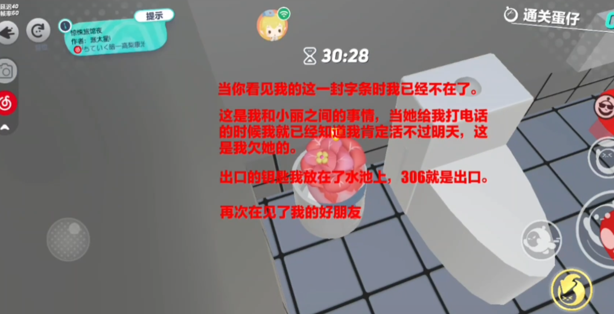 当集齐七个宝箱道具后,会在指定区域激活BOSS战环节。要注意保持移动,利用场景中的高低差和障碍物规避攻击,同时寻找机会使用道具反击。部分玩家反馈该地图存在视角拉伸的特殊机制,可能影响操作判断,建议提前调整至俯视视角以便全局观察。完成所有挑战后,玩家将揭开旅馆背后的秘密并成功逃脱,整个过程约需20-30分钟。