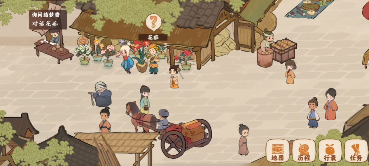 她通常出现在南市或北市的特定区域,具体位置与当前剧情进度相关。根据玩家反馈和实测,秋娘最常出现在南市布坊附近,靠近绢布河灯摊位的角落。若未在此处发现,可尝试前往北市香料铺周围寻找,尤其是摆放蘅芜香或海棠香丸的货架旁。