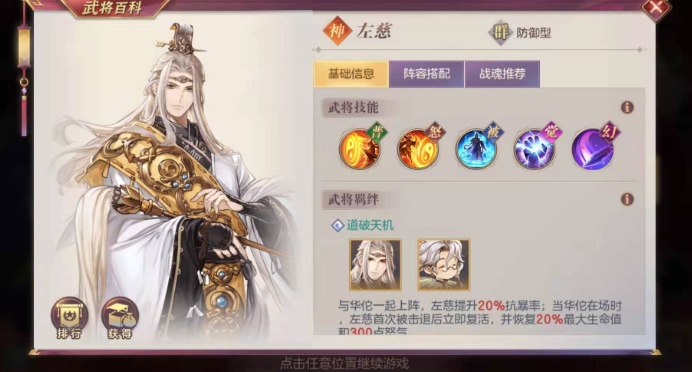 华佗作为群雄阵营的核心辅助武将,凭借其强大的群体治疗和增益能力,在多种阵容中占据重要地位。其主动技能青囊散可为全体队友恢复42%攻击力的生命值,并附加15%最终免伤效果,持续2回合。被动技能医者仁心能在队友生命首次低于50%时触发定向治疗,恢复60%攻击力的生命并提升20%最终增伤。觉醒后华佗还具备清除负面状态的效果,这在当前以debuff为主的战斗环境中尤为关键。