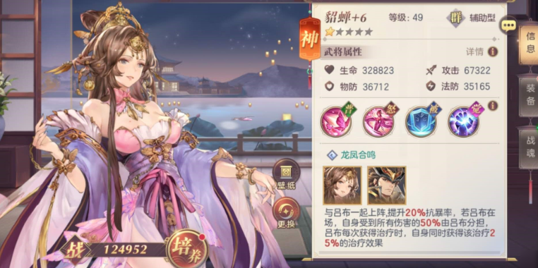 华佗常与吕布、貂蝉组成群雄核心体系。840万战力可推进至90章,该阵容依靠吕布的百分百暴击特性,配合貂蝉的控制和三星被动回血,左慈的百分比扣血和华佗的定向治疗形成持久作战能力。神兵配置以和氏璧为主,灵宠选择玄武增强生存。这种组合虽然输出节奏较慢,但通过精准控制敌方怒气和使用葫芦回血,能有效应对高难度关卡。