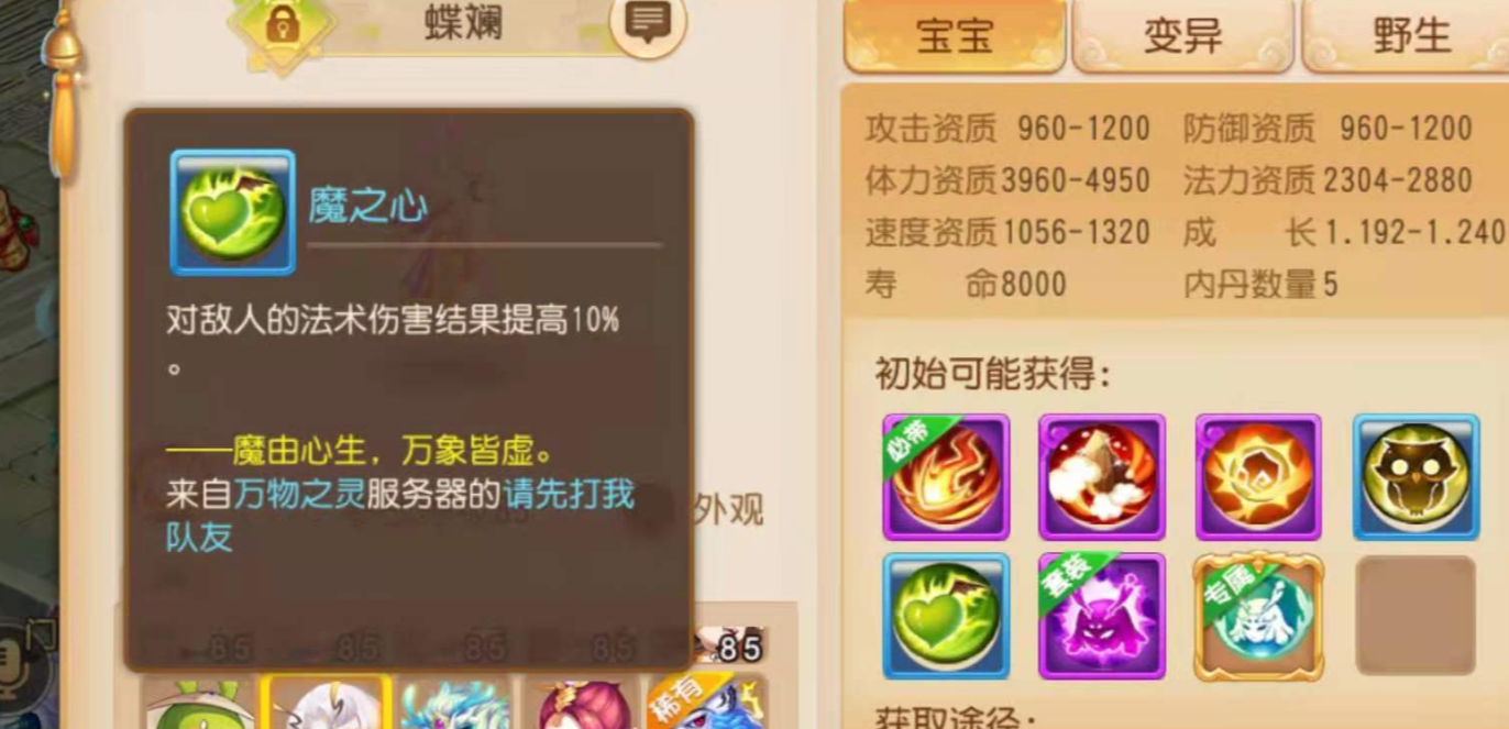 物理宝宝优先打连击、偷袭、吸血,法宠必备群法技能和魔之心,血宠则要配防御、反震类技能。这时候别急着打高级兽决,先用低级技能过渡,等后期换高级宝宝再投入资源。宝宝装备尽量选加攻击或法术强度的,哪怕白装也能提升不少输出。记得每天用月华露喂宝宝,快速提升等级才能发挥全部实力。