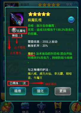 精修效果分为好几类,早夭这种反射类特别适合放在前排,毒化这样的间接伤害能稳定削血,负面buff比如毒砂减攻、禁疗克回复、锢魂防复活都超实用。正面buff像神之力加攻、神之护加血都是团队福音,控制类的麻痹、僵化、凝滞在PVP时尤其给力。紫法里气吞山河的群体毒化、九幽阴魂的早夭效果都很突出,太玄神功的加血上限特别稳。蓝法虽然品质低些,但夺命三斧这种平民神技精修后照样能发挥大作用。精修前一定要规划好资源分配,毕竟淬元沙不是大风刮来的。优先把核心法术修到够用的等级,别贪多嚼不烂。