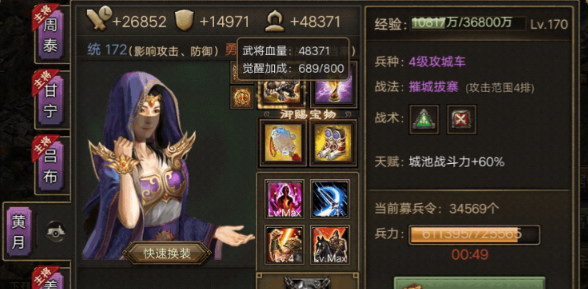 黄月英带两车配置非常关键,她的战法能减少敌方巨石破甲效果,同时云垂阵提供的防御加成能大幅提升队伍生存能力。周泰必须带三车和至尊御宝,他是整个阵容的收尾保障,高额平砍伤害配合固若金汤能稳定处理最后阶段的敌人。黄忠作为保险位带三车补刀,虽然战法容易被吸血效果克制,但战车撞击能有效消耗残局敌人。