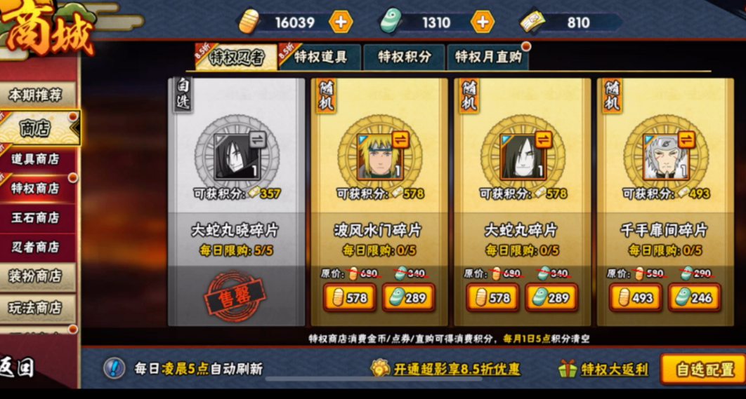V7以上玩家可解锁限定招募,斑的碎片可能出现在特权商店中,需用6480金币直购礼包。部分版本更新后,斑会进入封印招募卡池,与春野樱等忍者轮换。土豪玩家可通过充值快速获取,平民玩家建议结合月卡和每日任务攒金币,分阶段完成招募。招募斑需要长期资源管理,金币优先用于高招和限时活动,避免浪费在普通卡池。