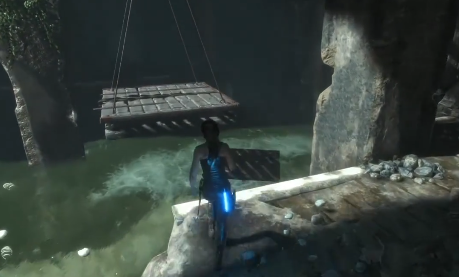 接下来会遇到一个被木板挡住的陷阱,直接用枪射击陷阱上方的原木就能破坏它。继续往前走,道路会突然坍塌,这时候需要先砸开墙上的裂缝放水。爬上水中的石板后,记得用弓箭射击吊着木板的机关,最后利用浮起的木板就能继续前进了。这里要注意观察环境,很多机关都需要及时互动才能触发。