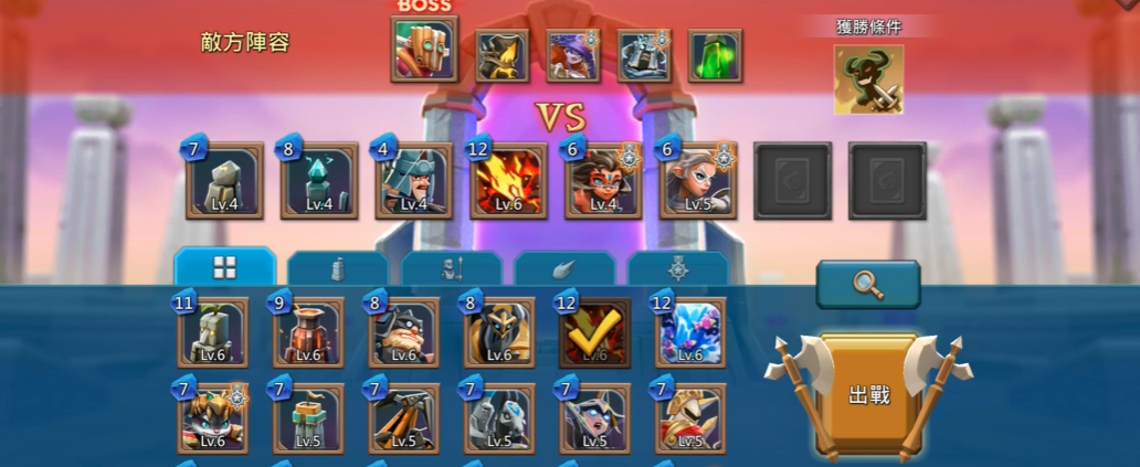 这一关敌人全是高攻击力的英雄,所以咱们得用专门克制英雄的步兵作为主力,搭配少量炮车和魔像辅助。步兵能有效抵挡敌方英雄的爆发伤害,炮车负责清理敌方炮台,魔像则提供属性加成。记得把英雄等级和装备都提升到当前能达到的最高水平,这样战斗力才能最大化。