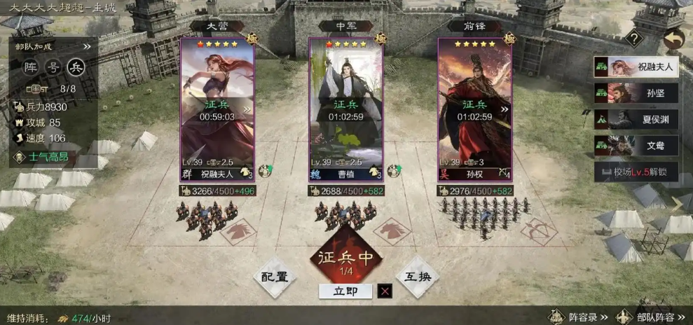 要塞的核心功能之一是支持野外征兵,其规则与主城征兵一致。部队在要塞待命时,点击对应队伍即可进入征兵界面,通过滑动条调节数量并消耗资源及铜钱(每兵2铜钱)。需注意要塞无法使用预备兵,且征兵时间受主城募兵所等级影响。若要塞在征兵期间被拆除或放弃,征兵进程将中断且资源不返还,因此需确保要塞安全后再操作。