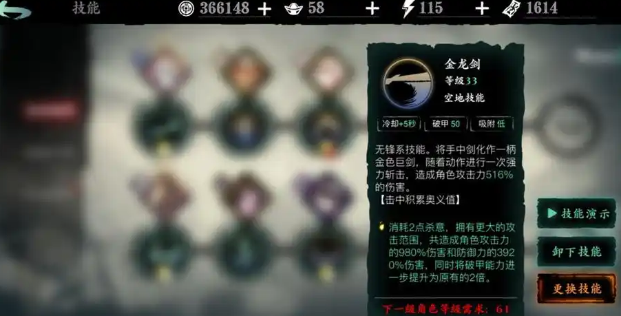 技能升级方面,建议优先提升金龙剑、巨剑飞旋和护体剑气的等级,这三项技能构成无锋的基础战斗循环。觉醒技能解锁后,可将其融入上链作为终结技使用,但需注意调整其他技能的冷却时间。实战中需灵活运用闪避取消技能后摇,尤其在释放火龙卷等长前摇技能时,通过闪避提前进入下一动作能显著提升输出效率。