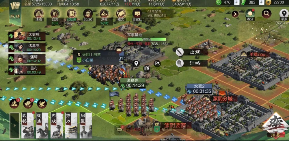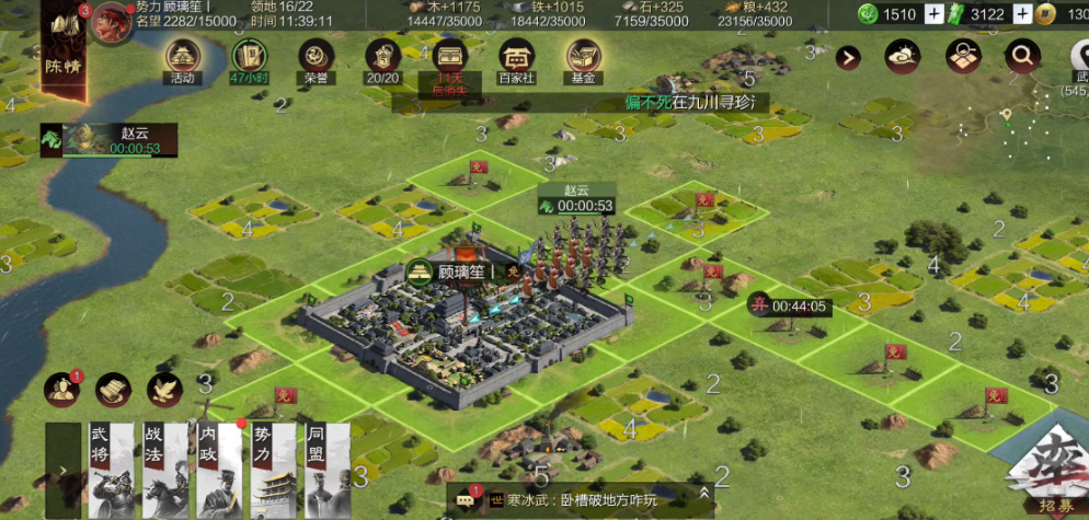 派出多支部队同时打一块地,第一队如果打成平局,第二队立马跟上,这样能大大提高成功率。优先占高级地旁边的低级地,方便后续推进。同盟的伙伴也能帮上忙,一起协作打地效率更高。记得每天清任务,这名望奖励不仅能提升土地上限,还能加快势力值增长。
