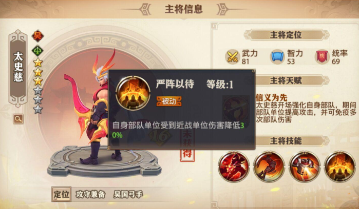 吴国灼烧流的核心在于利用周瑜的灼烧效果与弓手暴击联动。阵容推荐太史慈、甘宁、孙尚香、步练师四弓手,搭配典韦、黄盖等前排盾兵。军师必选周瑜,其火计与烈焰飞羽能大幅提升灼烧覆盖率,触发弓手被动暴击翻倍效果。该流派对后排输出要求极高,需优先培养太史慈的暴击属性,同时前排需保证至少两名高练度盾将抗压。
