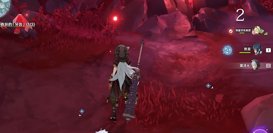 获得这把冰系专属武器,咱们得先完成腐殖之牙任务。任务触发点在雪山右侧角落,击败冰丘丘人王者后就能开启。记得提前把忍冬之树供奉到8级,这样才能拿到关键的北陆长柄原胚。任务会指引你收集三颗龙牙,分别在水中、洞穴和散落地面,用深赤之石破冰就能拿到第一颗。