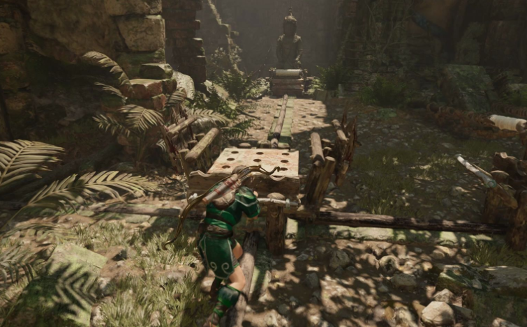 完成注水后,立即前往桥下,使用绳箭瞄准并固定断裂的绳索。这一步骤需精准操作,若耗时过长,容器内的水会流失,导致流程重置。成功连接绳索后,桥梁会被拉起,可返回桥面安全通过。该谜题考验玩家对时机把握与环境互动的理解,需注意机关触发顺序与协作机制。