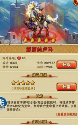 的卢马是另一个不错的选择,虽然它的技能增幅看起来一般,但在关键时刻能救命。比如敌方释放超合击时,的卢马的被动效果有机会保住你的武将,避免减员。这匹马适合给主力输出或辅助武将佩戴,尤其是那些需要站场久的角色。