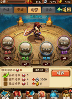 极限培养单核武将如吕布或姜维,需集中投入突破丹、培养丹与装备精炼石。吕布优先提升暴击与攻击属性,姜维需平衡输出与怒气回复效率。辅助型武将如诸葛亮或华佗,资源倾斜应侧重于生存与技能效果命中率。兵符与战宠选择需匹配武将特性,例如吕布搭配增加暴击伤害的兵符,周瑜适配提升灼烧效果的战宠。