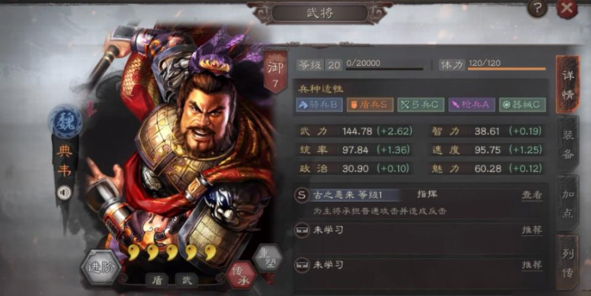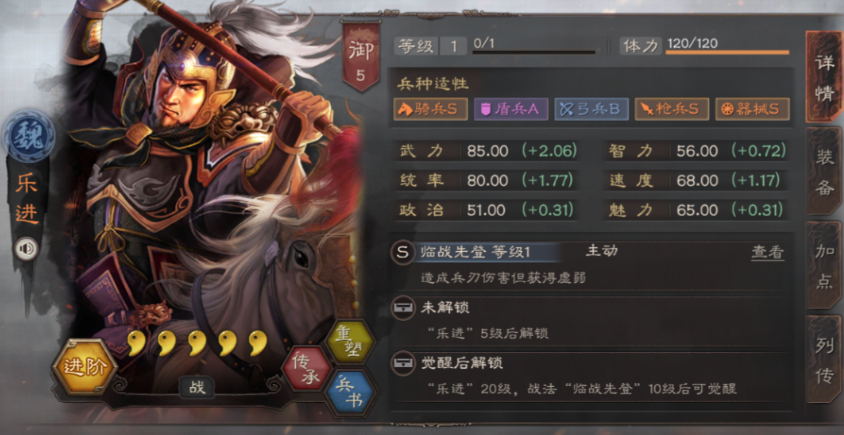 曹操的自带战法乱世奸雄非常强力,能为队友提供伤害加成并降低自身受到的伤害,主将时还能通过副将输出恢复兵力。这种攻防一体的特性让他成为阵容中的万金油,无论是开荒还是后期作战都表现突出。如果抽到了曹操,记得优先培养他的统率和智力属性,搭配防御型战法能最大化他的坦度和辅助能力。