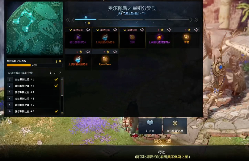 奥尔佩斯之星是游戏里非常重要的收集道具,总共有6颗,全部收集后能拿到不错的奖励。这些星星需要完成帕布尼卡大陆主线后才能解锁,每一颗获取方式各不相同,有的要做任务,有的要刷副本,还有的得攒够货币购买。