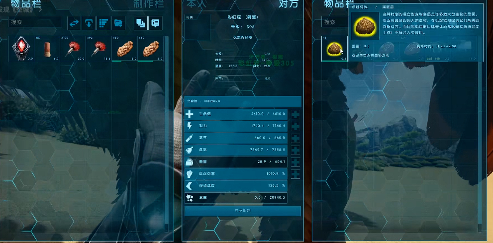 成功驯服后,镰刀龙可解锁69级鞍具,其左键攻击能高效采集肉类、兽皮、甲壳素等资源,右键则专精纤维采集。属性加点建议优先提升近战伤害与负重,以最大化其工具龙特性。需注意镰刀龙无法开采矿石,且战斗时需手动控制攻击目标以避免误伤友方单位。