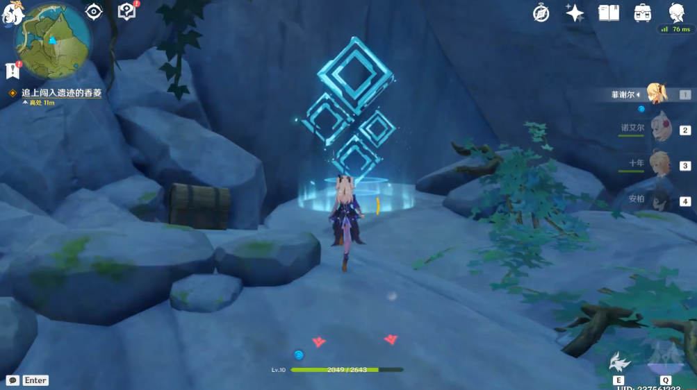 首先咱们要找到任务地点,这个任务点藏在悬崖底下的冰洞穴里,记得打开小地图仔细看标记。如果发现任务点莫名其妙消失了,别着急,退出游戏重新登录就能解决,这是个常见的小问题。进入洞穴后会看到香菱留下的痕迹,跟着走就能触发挑战。
