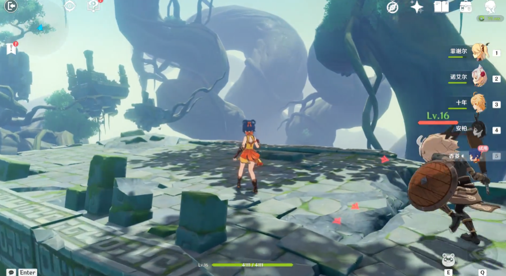 继续深入会遇到更多火元素方碑,这时候用香菱的大招可以一次性点亮周围所有方碑,特别方便。过程中可能会遇到冰冻的树木,同样用火元素技能把它融化掉。这里要小心保护好自己的火元素角色,别让它们被打倒,不然重新开始还挺麻烦的。