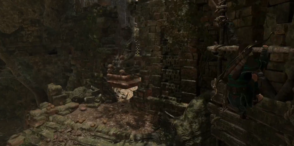 审判凝视古墓位于秘鲁丛林区域,是玩家早期接触的支线古墓之一。该古墓的核心谜题围绕一座高耸的神像遗迹展开,玩家需要通过操作滑车与重物系统,利用物理原理将梯子升起以抵达技能石碑。进入古墓需先获得攀爬斧,否则无法触发后续解谜环节。古墓内部结构呈多层平台设计,中央区域设有两座可移动滑车和两尊小型神像,需通过绳索连接与重量分配完成机关破解。