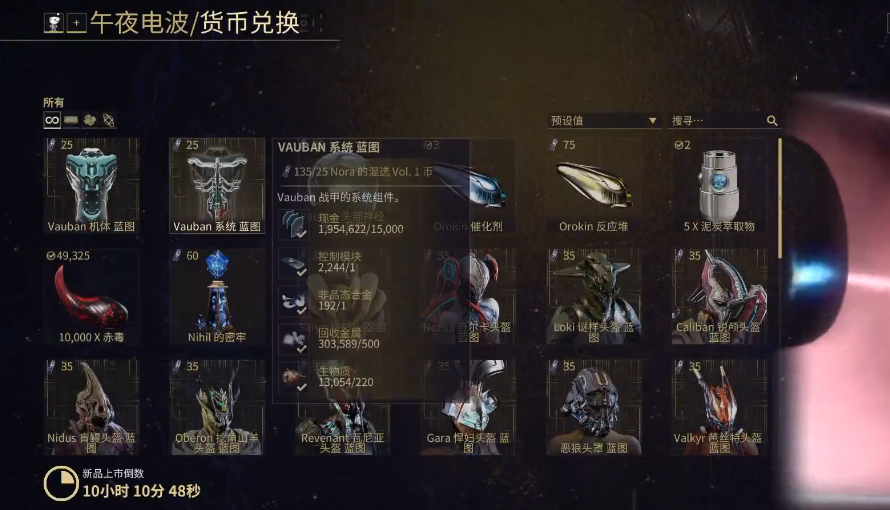 获取Vauban战甲的蓝图,最直接的途径是通过午夜电波任务。午夜电波是由Nora Night主持的特殊广播活动,里面会随机刷新各种挑战任务和奖励。完成这些任务后,咱们可以用获得的货币兑换Vauban的主蓝图和部件蓝图。Vauban的蓝图分为四个部分,包括头部、机体、系统和主蓝图,每一部分都需要单独兑换,所以得多花点时间刷任务攒货币。