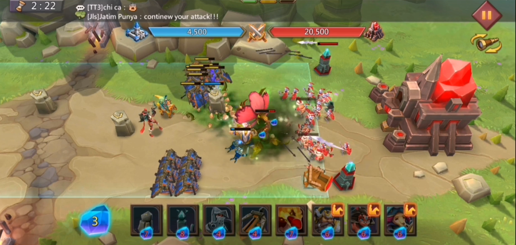 清兵关卡压力最大,需采用防守反击策略。开局在后场布置魔像和攻击型防御塔,优先用技能消灭敌方炮车单位。待兵线压力减轻后,再向前推进建立炮车阵地。最终关卡6-15较为特殊,敌方为纯英雄阵容,传统克制英雄的卡牌收效甚微。应大量投放克制英雄的步兵单位,配合炮车清理敌方炮台,注意控制冲锋节奏避免被集火。优先收集矿洞的矿产和森林的木材军粮,用于强化建筑和补充兵力。水晶消耗需合理规划,3M左右水晶即可将步弓骑主力卡牌升至满级。