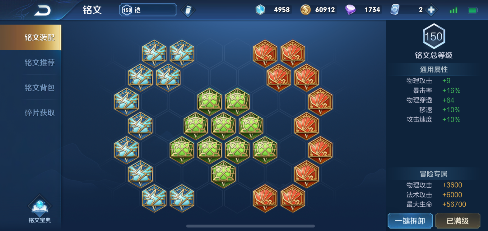 红色铭文主流选择是祸源,它能提供稳定的暴击率,对于需要靠暴击打爆发的铠来说非常关键,有些攻略也会提到掺几个无双来提升暴击效果,但核心还是以堆高暴击率为优先。蓝色铭文通常带狩猎,增加攻击速度和移动速度,攻速让你连招平A更顺畅,移速则弥补了铠腿短的缺点,不管是追击敌人还是跑路都更有把握。绿色铭文没啥争议,基本就是鹰眼,提供物理攻击和物理穿透,确保你的伤害打到坦克身上也不会刮痧。所以一套常见的瞬爆流铭文就是十个祸源、十个狩猎和十个鹰眼,这套铭文能让你在游戏前期就有不错的战斗力,对线换血不吃亏,清线速度也快,为中后期装备成型后的秒人奠定基础。记住铭文和出装要协同起来看,它们共同决定了你的输出节奏和生存空间。
