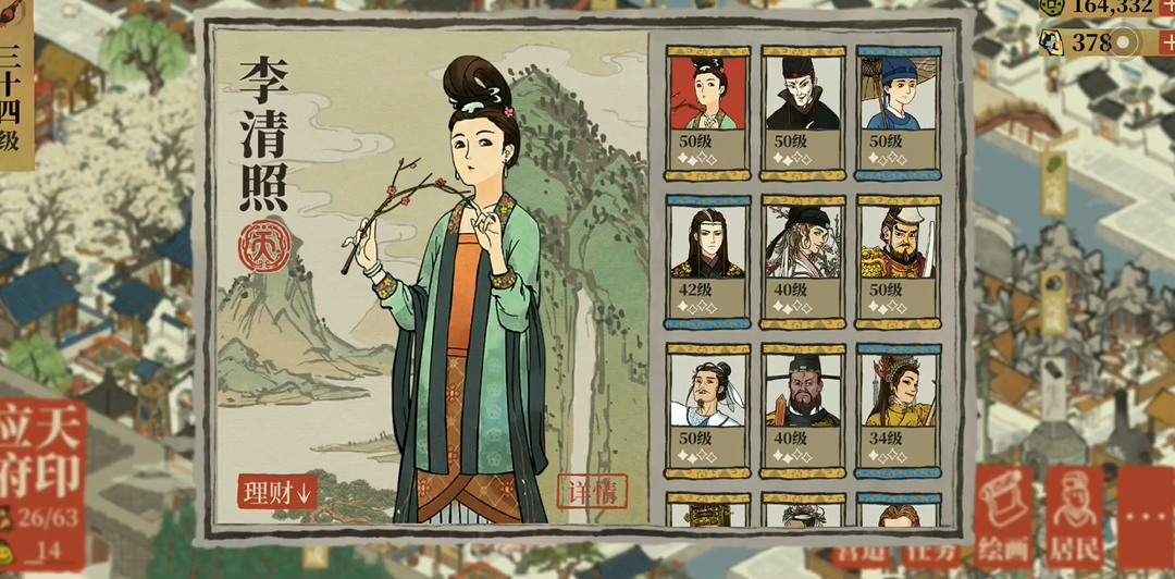 为了充分发挥李清照的潜力,玩家应优先安排她在理财类建筑中执行任务。这些建筑通常涉及金币产出,而她的天赋能直接提升收益效率,并降低人力需求。这种安排不仅帮助你快速刷取金币,还能优化整体资源分配,让其他角色专注于不同领域的工作。