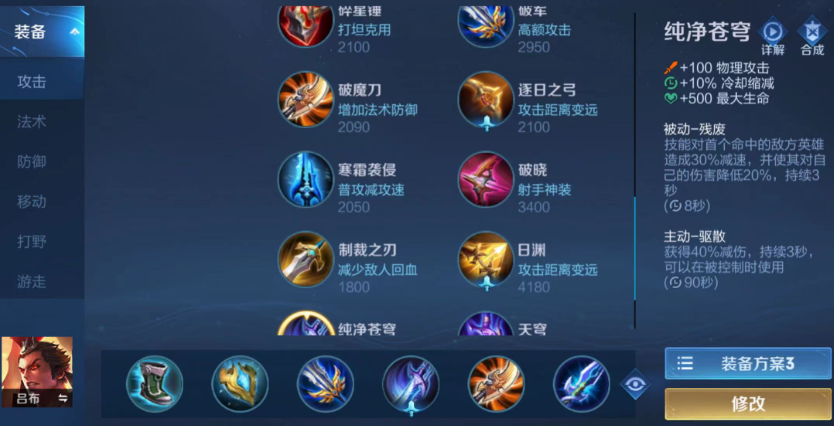 这时候需要补充核心的输出装备和一件关键的防御装。第一件大件,推荐破军,这件装备能巨幅提升吕布的攻击力,并且对生命值低的敌人有额外伤害,是强化吕布收割能力的核心。出了破军,你的伤害就会有一个质的飞跃。但光有输出不够,咱们还得能站得住。所以接下来很关键的一件装备是反伤刺甲或者极寒风暴。反伤刺甲提供高额物理防御,并且能将受到的物理伤害反弹一部分给对手,性价比非常高。极寒风暴则能提供冷却缩减、蓝量和物理防御,被动效果还能减速敌人,让你更能黏住对手打。这两件根据局势选一件出,你的生存能力就大大提升了。