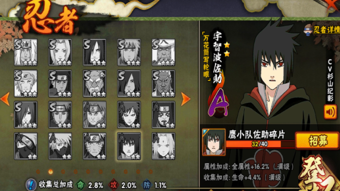 玩好鹰佐助首先得想办法把这个忍者弄到手。目前获得鹰佐助的主要途径是通过游戏里的特权商店购买他的碎片。这需要你先把自己的VIP等级提升到6级,解锁了特权商店才行。在商店里,你可以花费金币刷新商品,有机会刷到鹰佐的碎片,为了方便,你还可以锁定这个忍者,这样下次刷新的时候目标会更明确。这个过程需要一些耐心和金币积累,但对于喜欢这个角色的玩家来说,绝对是值得的。毕竟,一个强力忍者可是你驰骋决斗场的基础。