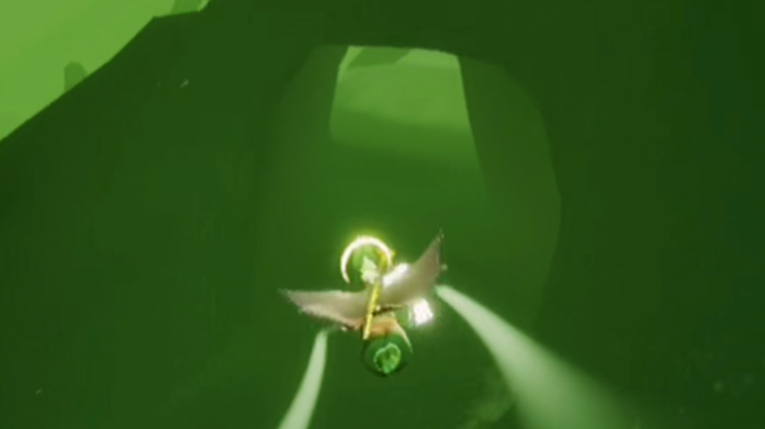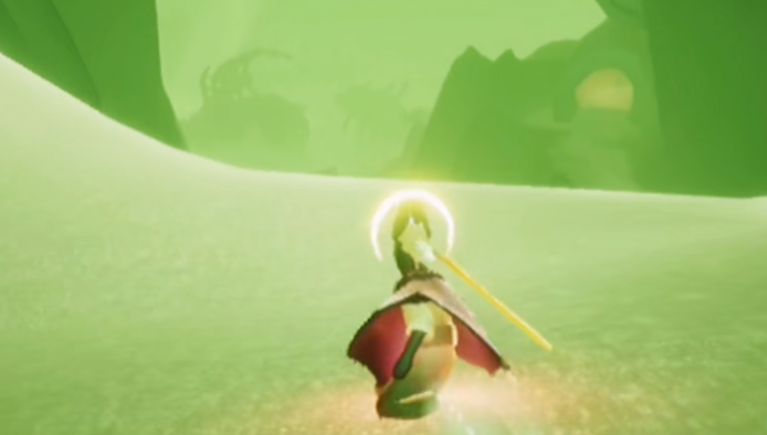 进入沉船图后,视野会变得相对开阔,场景中央或靠右的位置有一艘明显的沉船残骸。隐秘幸存者先祖的具体位置就在这艘沉船的另外一边。玩家靠近目标区域时,会观察到先祖以蓝色光点的形式显现。需点亮先祖脚下的烛火以触发互动,随后跟随浮现的光点路径移动,完成一段简短的故事回溯,收集先祖的记忆碎片,即可成功解锁躲藏站姿动作。整个过程建议保持充足的斗篷能量,并注意利用场景中的掩体躲避冥龙威胁。