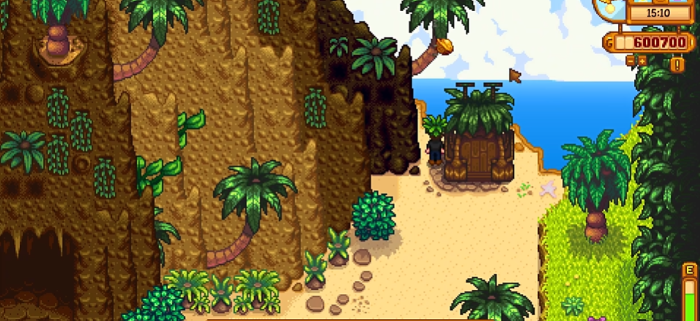 要找到日记残页所指示的宝藏,玩家必须首先解锁姜岛区域。解锁姜岛需要完成社区中心的修复或通过乔家仓库的路线,随后前往威利的渔具店帮助他修复船只。修复材料包括硬木、铜锭和一定金币,筹集完毕后支付船费即可抵达。到达姜岛后,前往岛屿西侧的农场区域,从农场位置向下走,可以看见一片布满蛤蚌的海滩区域,沿着这片区域的右侧继续前进,便能抵达日记中所描述的地点。