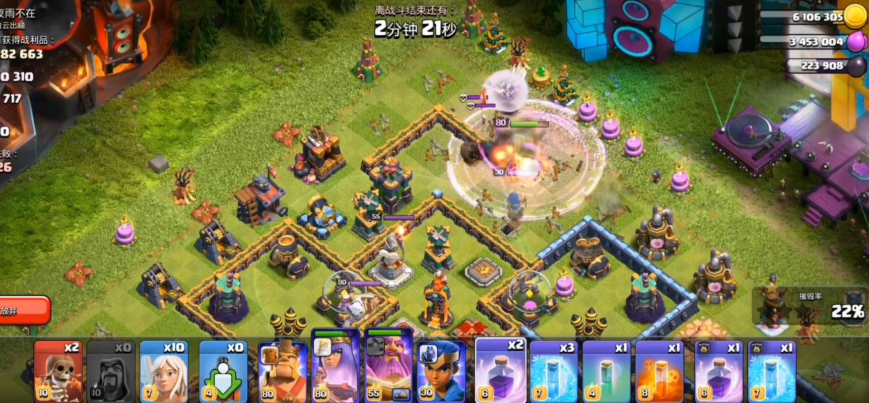法术的携带与使用时机是决定八天使打法上限的关键因素。狂暴法术是必备选项,通常需要携带三到四瓶,其主要作用是大幅度提升天使的治疗量以及被治疗单位的伤害和移动速度,确保在遭遇多个防御建筑集火或敌方英雄时能快速突破。冰冻法术需要携带两到三瓶,用于在核心部队接近多头地狱塔、投石炮、骷髅陷阱等致命防御设施时,及时冻结它们以争取输出时间。弹跳法术在某些阵型中也可能有用,可以为核心地面部队创造更灵活的路径。需狂暴法术提供的增益效果具有持续时间,即使单位离开法术范围,增益仍会持续一小段时间。