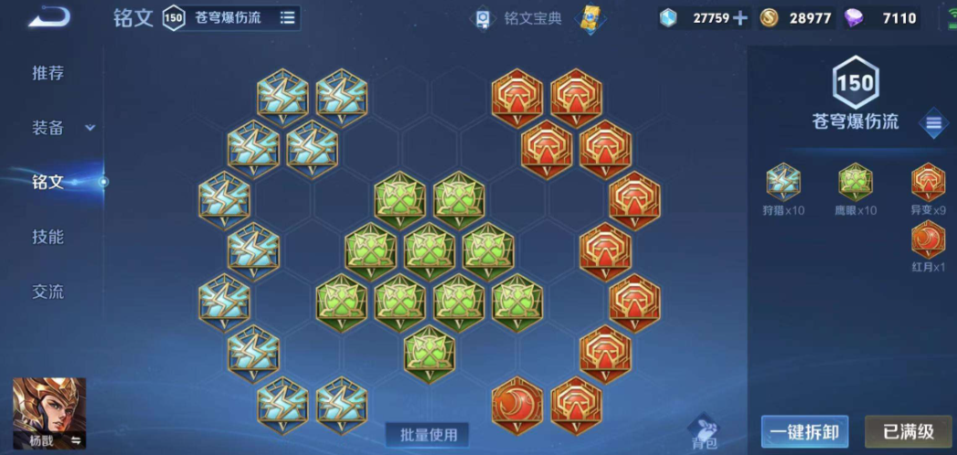 铭文搭配上,可以选择十异变、十隐匿、十鹰眼的纯攻击百穿铭文,最大化前期伤害。另一种选择是五异变加五红月、八狩猎加二隐匿、十鹰眼,这套铭文在保证穿透的同时融入了一些攻速和暴击,让普攻手感更顺畅。核心目的是强化杨戬的物理攻击和穿透,确保技能连招能对李信造成有效杀伤。