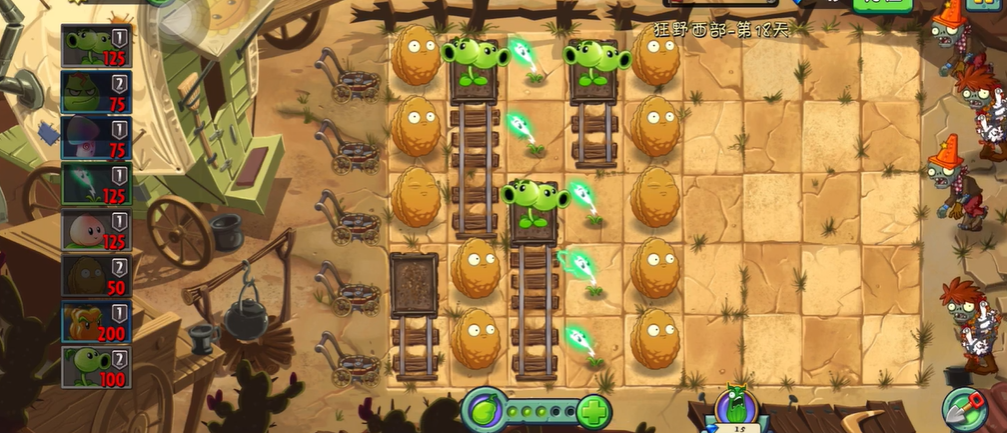 如狂野西部困难模式仅提供1500起始阳光且没有小推车,每一步的植物选择和种植顺序都至关重要。此时应优先选择阳光消耗低且实用性强的植物构成防线,例如仙人掌、闪电芦苇等。阳光管理是重中之重,需要在开局后快速完成基础防御布局,后续的所有阳光收入都应精确计算,优先用于补充和升级核心输出植物,避免任何不必要的消耗。若关卡限制了阳光生产类植物,则更需精打细算,将有限的阳光全部投入到攻击型植物的构建上。