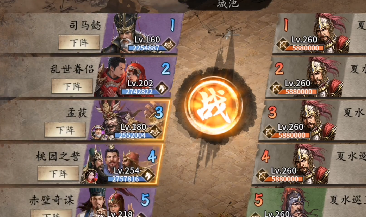 战法和地形也要注意,260级副本是城池地形,NPC是弓兵,战法万箭齐发能打四排,所以尽量别让脆皮武将硬吃战法。建议用云垂阵或者八卦阵来提升生存能力,尤其是黄月英带八卦阵的话,配合觉醒孙尚香能砍出更多刀。如果战车没重铸完也不用慌,二车阶段就能打,重点是把克制书和阵法等级拉满。