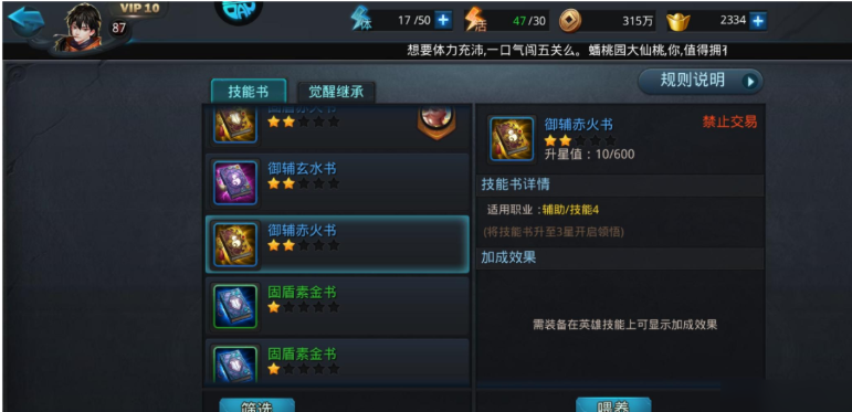 技能书系统深度关联角色成长曲线,后期需通过三界平乱等玩法获取高阶觉醒材料。资源有限时,建议集中培养2-3名主力英雄的技能书至满星,避免分散投入导致战力瓶颈。定期检查技能书库,分解冗余低阶技能书兑换升星资源,可有效优化养成效率。