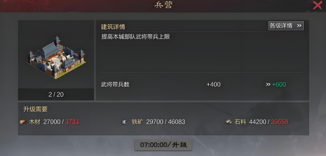 将部队调往分城需要明确分城与主城的独立军事体系。分城相当于一个全新的城池,拥有独立的部队编制和军事建筑,主城部队无法直接进驻分城。玩家需在分城内重新组建部队,通过升级分城的校场和募兵所来提升统率值上限与征兵效率。分城的部队属性加成仅对本城生效,与主城军事类建筑加成互不叠加,需单独规划发展路线。
