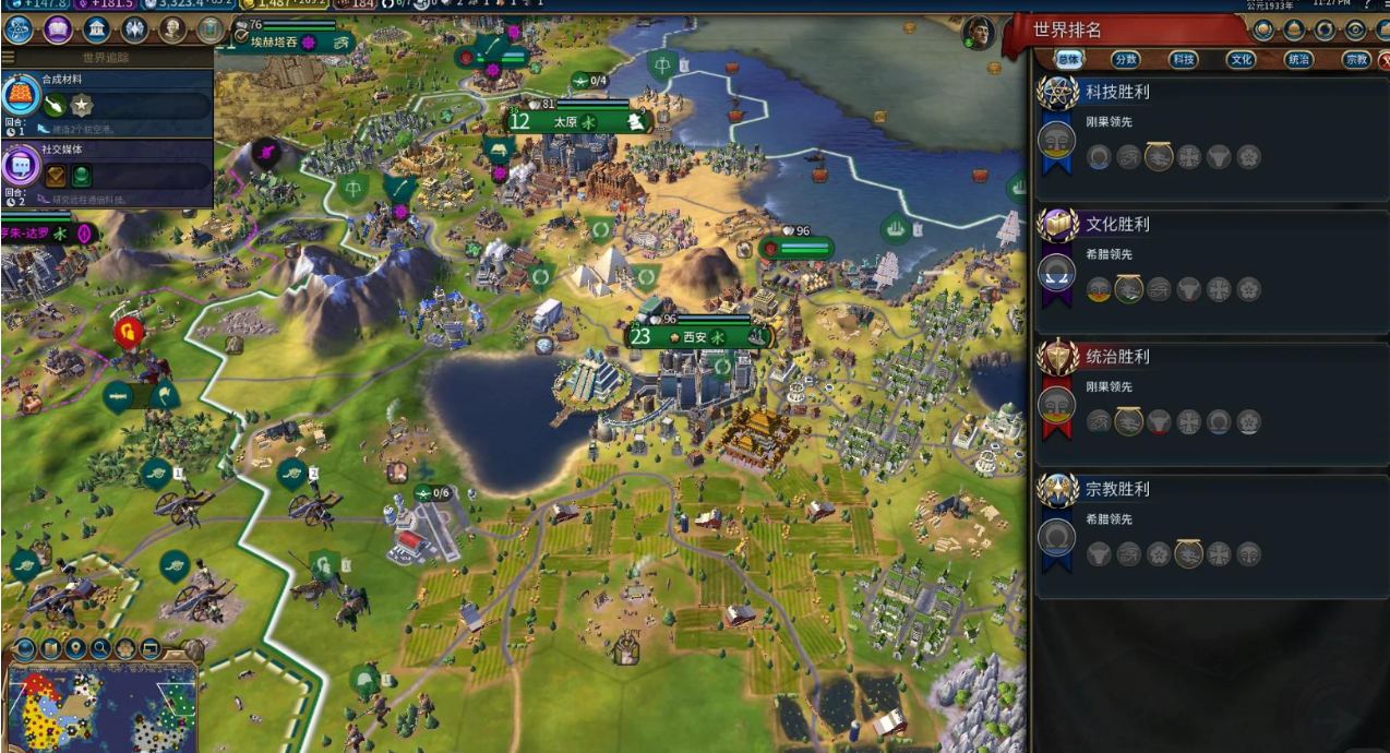 提升旅游业绩的途径有很多,剧院广场是文化胜利的核心区域,尽早建造并填满巨作槽位。巨作主题化能大幅提升产出,所以尽量收集同一主题的艺术品或文物。考古学家也很重要,挖到的文物可以放进考古博物馆,配合政策卡能带来可观加成。别忘了自然奇观和度假区,这些地块改良能提供稳定的旅游业绩。飞行科技解锁后,所有奇观和改良的旅游业绩会翻倍,所以科技树要优先冲向这一节点。