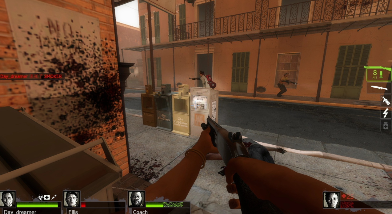 整个教区章节的战术核心在于节奏控制。开阔区域需快速通过,狭窄地带则要稳扎稳打。特殊感染者出现时优先处理Smoker和Hunter,Boomer需远程击杀避免被胆汁覆盖。合理利用环境爆炸物(如氧气罐)可大幅降低战斗压力。若队友倒地,不必急于救援,需先确保周围安全再实施救助。