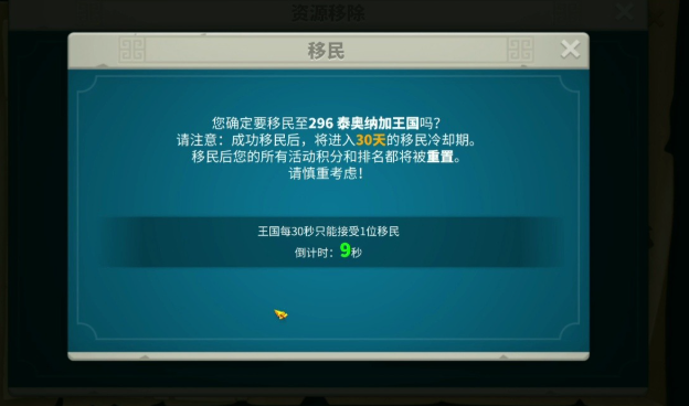 操作迁移时,先缩小地图点击右下角的王国图标,浏览可选目标。选择合适位置后系统会提示所需移民令数量,确认无误即可完成迁移。高级玩家要注意战力越高消耗的移民令越多,最多可能需要75个。如果想和盟友汇合,可以提前沟通好目标地点,确保迁移后能快速集结。