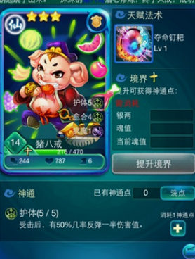 飞升成功后,护法的星级会提升,属性也会大幅增强,但原有的经验和神通点会保留。需飞升后的护法名字和缘分不会改变,只是实力更强了。如果亲爱的护法在飞升前有剩余的神通点,这些点数会保留到飞升后的新卡上,不会浪费。所以平时可以放心升级神通,不用怕飞升后重置。4星护法飞升到5星,通常需要额外4张同名卡来补足神通点。平时可以多刷特定关卡,比如3-5土地祠能掉落猪八戒的蓝卡,积累魂魄合成同名卡。